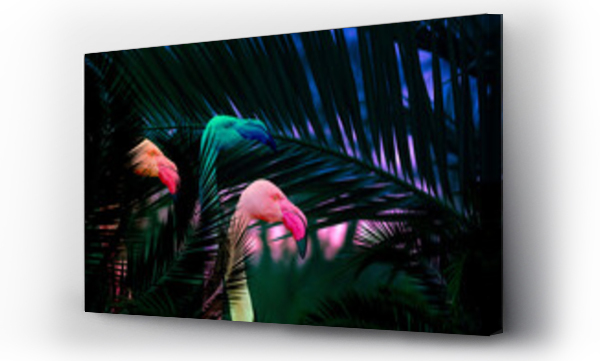 Jungle background with colourful flamingo birds hiding in the leaves