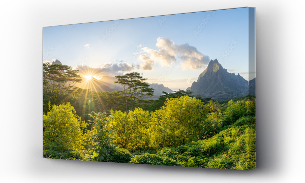 Mont Rotui seen from the Belvedere Lookout at sunset, Moorea island, French Polynesia
