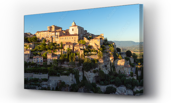 Gordes, panoramic view of one of the most well-known hilltop villages of Provence at sunset. Unique architecture of stone houses and terraces in Vaucluse, Provence-Alpes-Cote dAzur region, France