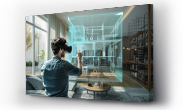 Man uses VR to visualize architecture plans in modern room